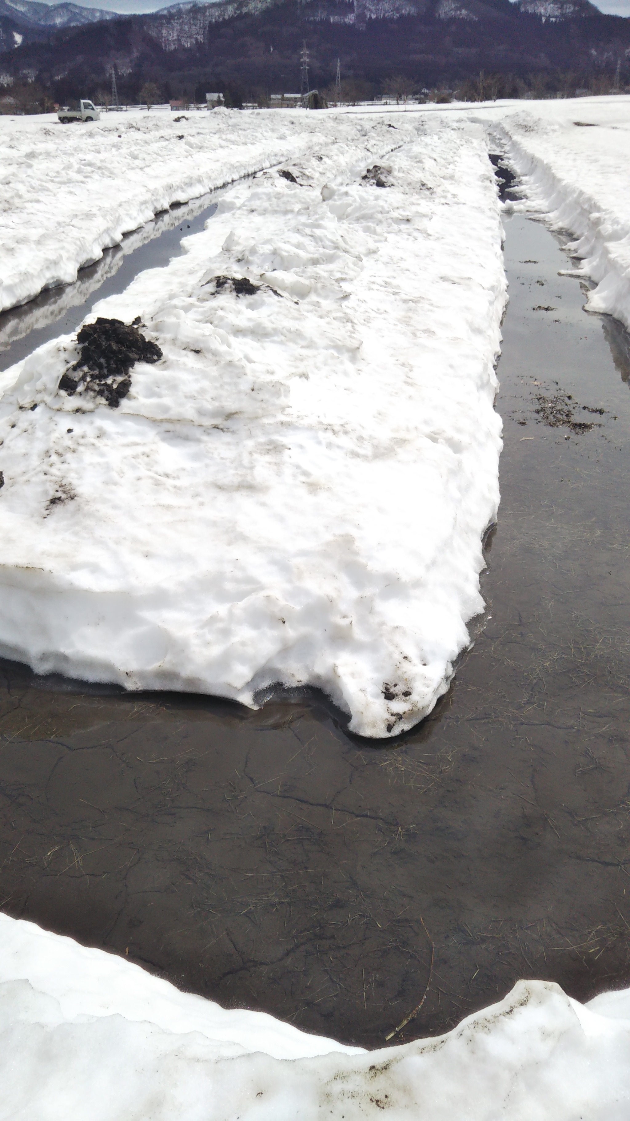 本日の苗代場は雪どけ水で湖みたいになってました!