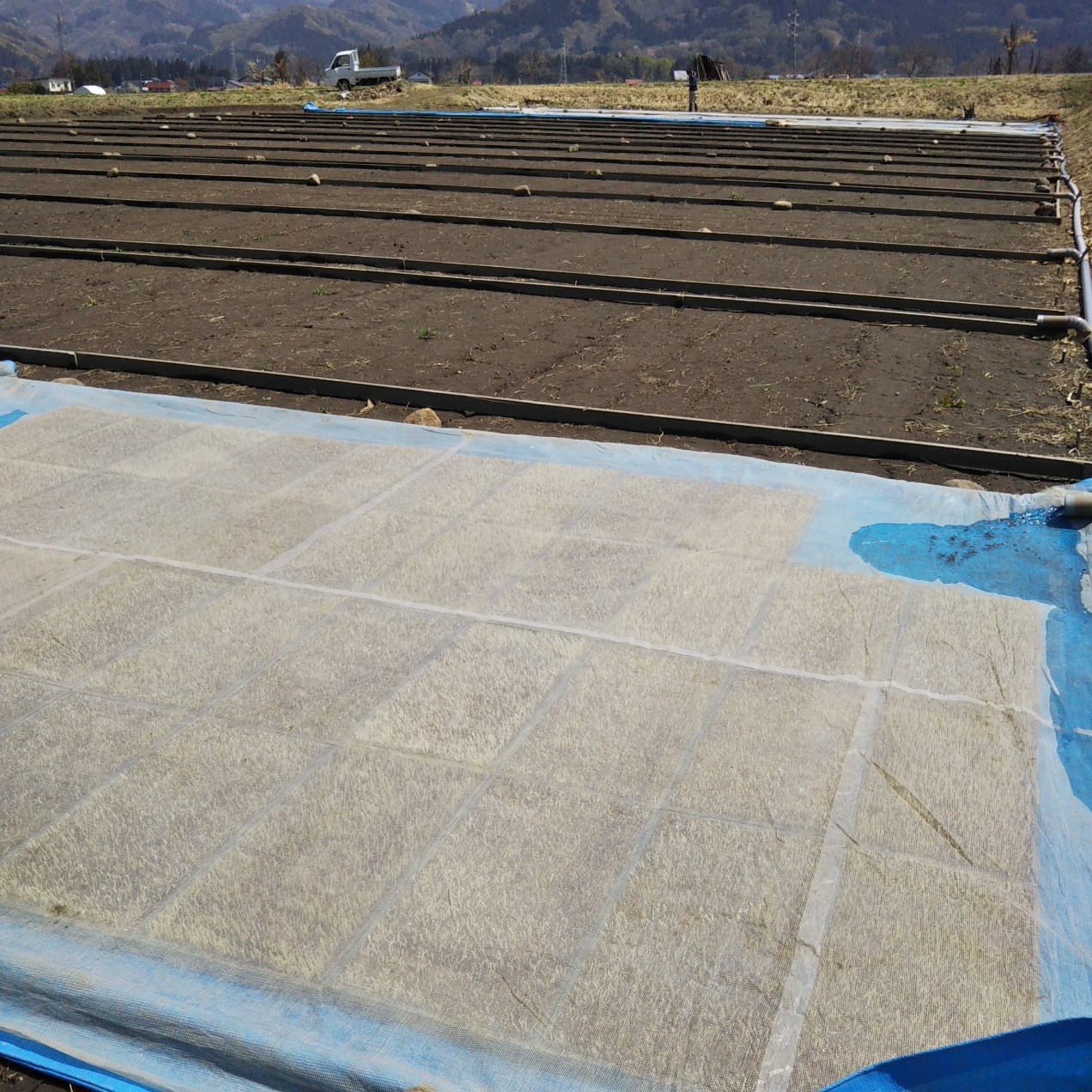 苗箱を並べるときはスクワット体勢なので下半身が筋肉痛です。
