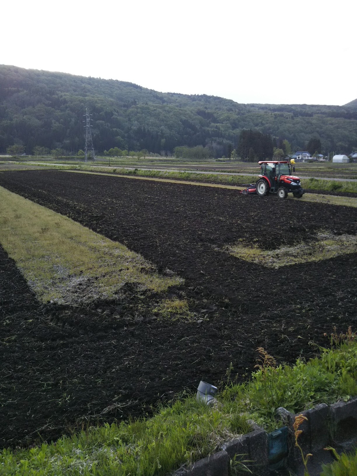 田を耕起しているのですが、いかにタイヤ跡を残さずに仕上げるか、を追及しつつやっております。