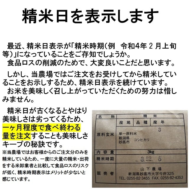 新潟県妙高市で栽培されたコシヒカリ3kg(紙袋入り)1つ入りです。新潟県認証の減農薬減化学肥料米かつ一等米で見た目にも美しいお米です。品の良い旨みが特徴のコシヒカリです。炊き立て時は太陽と青草のような香りで食感はサクッとしながらも、噛み応えはもっちり軟らかめ、控えめな甘さからコクの余韻があとを引きます。最大の特徴は時間が経っても美味しく頂けること!冷ご飯も美味しいのでお弁当にもぴったり。毎日の食卓で幸せを感じてください。